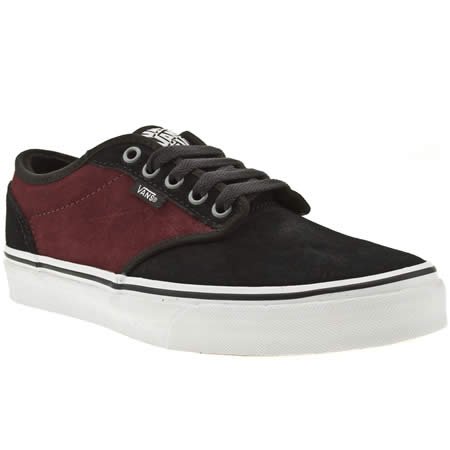 VANS The Atwood from Vans arrives in this premium build. Low cut with a rich burgundy and black suede upper, piped fabric seams and Vans branding on the tongue. Finished on a thick vulcanised waffle sole and inner padding for total comfort. VANS, the original skate shoe, since 1966 vans has been committed to delivering authentic performance boarding shoes that reflect individual style of riders around world, original, stylish and functional, Vans shoes, Vans shoe company.